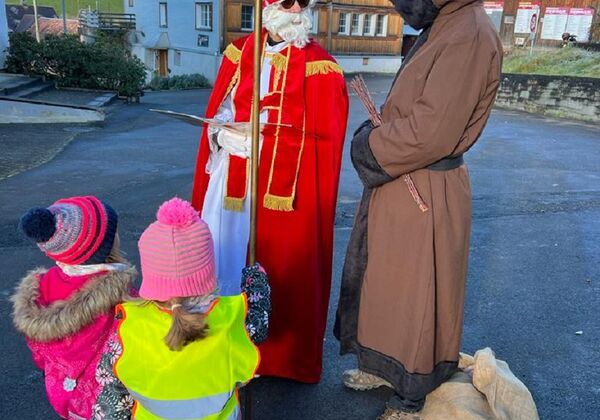 «Endli isches sowit, es isch wieder Samichlause-Zit», tönt es schon seit Tagen aus dem Schulzimmer der 1./2.Klasse. Bei winterlichen Temperaturen und strahlendem Sonnenschein machten wir uns dann voller Vorfreude und Nervosität am 6.Dezember auf zu unserem Waldplatz. Dort angekommen hörten wir auch schon bald das bekannte Glöcklein vom Samichlaus. Begleitet von seinem Esel und zwei Schmutzlis kam er direkt auf unseren Waldplatz zu. Das auswendig gelernte Sprüchli gefiel dem Samichlaus sehr und er hatte sogar für jedes Kind ein Säckli mit feinen Sachen dabei. Zuerst aber hat er aus seinem Buch erzählt, was ihm an jedem einzelnen Kind gut gefällt und was sich im nächsten Jahr bessern sollte. Zum Schluss durften die Kinder das Eseli noch streicheln.