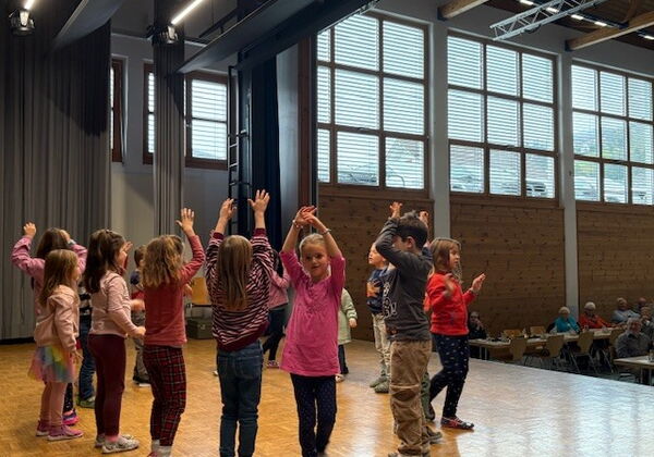 Dieses Jahr durften unsere Schmetterlinge vom Kindergarten am Seniorenzmittag in der Turnhalle einen ganz grossen Auftritt feiern. Etwas nervös aber mit sehr viel Stolz, gaben sie ihre Lieder und Tanzeinlagen zum besten und ernteten dafür viel Applaus von den Eichberger Seniorinnen und Senioren.