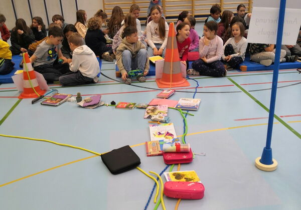 Am ersten Mittwoch im neuen Semester starteten wir mit dem Lernatelier. Während die Schüler- und Schülerinnen der 3. bis 6. Klasse sich in der Turnhalle versammelten, trafen sich die Jüngeren im Musiksaal zum gemeinsamen Beginn des Lernateliers. Nach der Eröffnung mit dem Schulhaussong stimmten sich die Kinder auf ihren Lernweg ein, auf dem die älteren Schüler und Schülerinnen bis zu den Sommerferien 3 Phasen durchlaufen werden. Dabei werden für alle neue Lernwelten geöffnet, Interessen und Neugier geweckt und das Lernen auf eine vielfältige Art und Weise erlebt. Alle freuen sich auf ideenreiche und spannende Lernwege!