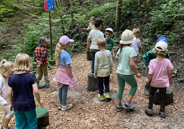 Am Donnerstag, 6. Juni, durfte der Kindergarten auf Chindi-Reise. Bei wunderbarem Wetter fuhren wir mit dem Bus bis nach Lüchingen zur GESA. Nach einer ersten Rast auf dem Spielplatz bei der Badi ging es über Stock und Stein und eine Brücke zum geplanten Waldplatz weiter. Dort konnten wir klettern, den Wald erkundschaften, Brücken bauen, bräteln, Glacé essen oder einfach auch mal Pause machen. Erschöpft und mit vielen Erlebnissen im Gepäck machten wir uns nach einigen Stunden wieder auf den Heimweg. Schön war es!