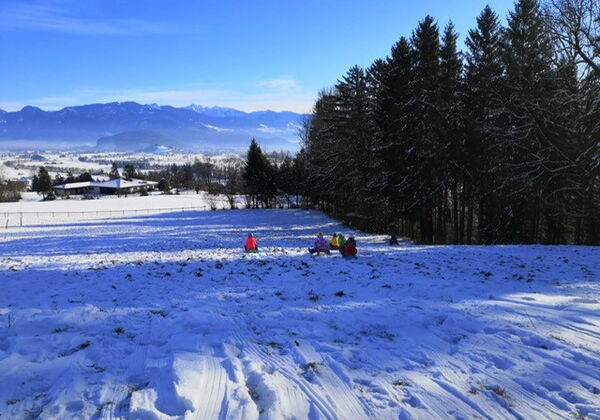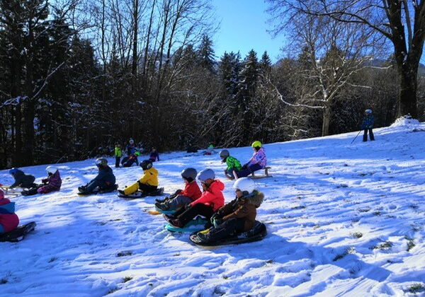 Juhui, endlich Schnee! Mit Bob und Schlitten zogen die 2./3. Klässler zum Schlittenhügel an der Schulhausstrasse und nutzten den ersten Schnee im neuen Jahr. Alle hatten einen Riesenspass!