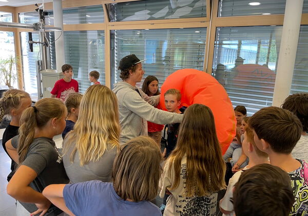 Heute Morgen sind wir, die 5./6. Klasse, ins Sommerlager nach Davos gefahren. Wir haben lecker Zmittag gegessen und dann sind wir ins Institut für Schnee- und Lawinenforschung SLF. Es war sehr, sehr cool. Wir schauten an, wie Lawinen ausbrechen. Und danach haben wir noch besprochen, wie man einen Menschen aus einer Lawine ausgräbt. Das tollste war beim SLF der Kälteraum, es war -20 Grad. Wir durften kurz hineinstehen. Danach sind wir zurück ins Lagerhaus, genossen den Zvieri und machten ein Foto-OL durch Davos in 3er oder 4er Gruppen. Am Abend spielten wir noch draussen auf unserem Sportplatz neben dem Pfadiheim.